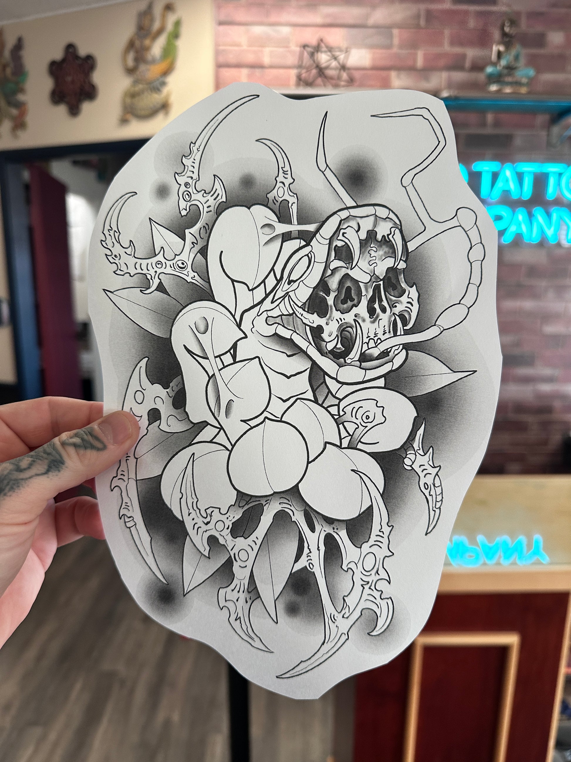 This tattoo design will need to be at least as big as shown. Color schemes are optional, or straight black dotwork. The tattoo will take approximately 4 hours to complete in one session. If you require an additional session to finish it, we will charge my regular rate of $200/hr until it is done.